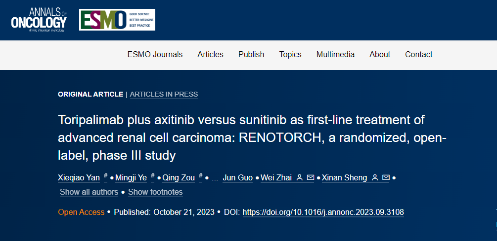 由北京大学肿瘤医院郭军教授和上海交通大学医学院附属仁济医院黄翼然教授联合牵头开展的国内首个晚期肾癌免疫治疗关键Ⅲ期临床研究RENOTORCH研究成果在ESMO大会优选口头报告专场会议上首次发布,北京大学肿瘤医院盛锡楠教授报告了研究详细结果。全文同步获ESMO官方期刊《肿瘤学年鉴》(Annals of Oncology;影响因子:50.5;肿瘤领域全球排名TOP5的顶级期刊)发表,吸引了国际学者的广泛关注。